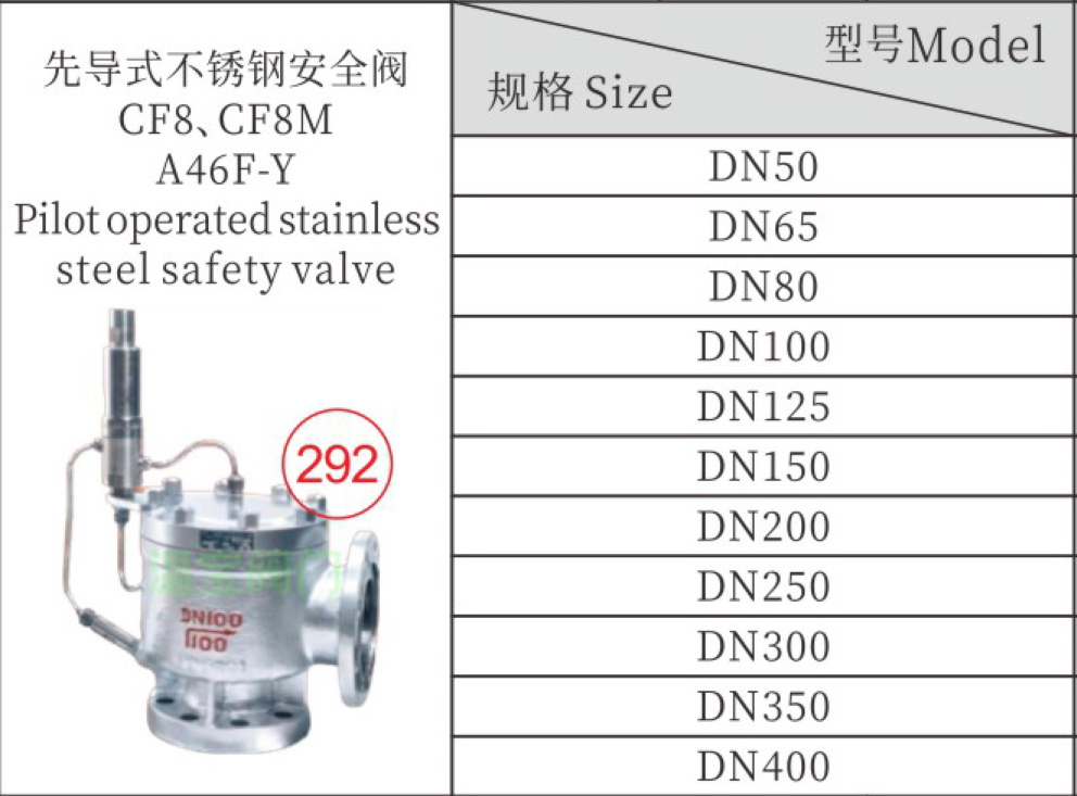 先導(dǎo)式不銹鋼安全閥 CF8、CF8M A46F-Y